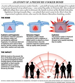 John Nuttall and his girlfriend, Amanda Korody, had plotted their act of domestic terrorism for months, police say. The alleged scheme involved three makeshift bombs: Nails and other bits of metal, packed with explosives into iii stainless steel pressure cookers, then assault the grounds of the Legislative Associates in Victoria. Gear up to explode while the residuum of us cheered and gave some thanks for being who we are, where we are, what we are.